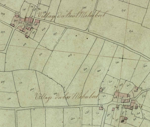Le Haut-Méhubert est situé au nord-ouest du village de Poilley. Il s'agit d'un écart peu étendu mais constitué de quelques bâtiments intéressants. En 1833, lors de la levée du premier cadastre de la commune, la composition de cet écart était à peu près la même que la composition actuelle sans qu'aucune construction majeure n'ait disparu. Les bâtiments qui composent cet écart aujourd'hui sont figurés sur ce document, puisque leur construction semble remonter pour les plus anciens au 17e siècle. Certains bâtiments ont subi des remaniements assez conséquents au cours du 20e siècle, et sans doute dès le 19e siècle, tels que remontage de la façade ou agrandissement et ajout d'ouvertures. Ces remaniements importants ne permettent pas de dater ces bâtiments précisément. Cependant, deux bâtiments sont assez bien conservés et présentent des éléments permettant de les dater du 17e siècle et du 18e siècle, notamment grâce à leur appareillage et la forme de leur toiture. Un bâtiment fut ajouté dans l'écart après la levée du cadastre de 1833. Son architecture est assez typique de la fin du 19e siècle ou du tout début du 20e siècle, avec l'emploi notamment de la brique au niveau des ouvertures. Le Bas-Méhubert situé non loin présentait également d'intéressants bâtiments anciens, notamment un alignement qui remontait au 17e siècle et qui avait en façade une très belle fenêtre avec une accolade sur le linteau et une grille. Une des dépendances portait la date de 1679. Ce bâtiment n'existe plus aujourd'hui.