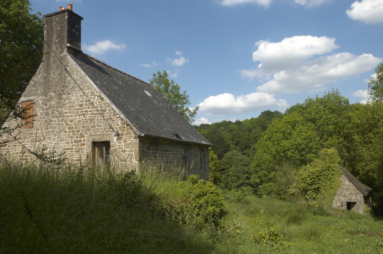 Cette maison est construite en moellon de granite et possède un toit à longs pans couvert d'ardoise. Les encadrements de baies sont réalisés en pierre de taille de granite ; le linteau de la porte du rez-de-chaussée témoigne de la date de 1746. D'autre part, il existe une porte au pignon ouest, qui dessert la pièce du premier étage. Le linteau de cette porte témoigne de l'inscription suivante : SACHER. A l'intérieur, le rez-de-chaussée est composé d'une pièce à feu unique, équipée d'une cheminée monumentale en granite dont le linteau est décoré en partie centrale d'un écu lisse. Cet écu lisse est soutenu par deux figures féminines qui semblent être des sirènes puisqu'elles présentent un visage humain associé à une queue de poisson. Cette pièce du rez-de-chaussée possède deux fenêtres en façade sud, la plus à l'ouest, la plus petite, semble avoir été équipée d'un chauffe plats ou potager. Ainsi, dans certains manoirs, il existait des chauffe-plats destinés à éviter que les plats ne refroidissent. Ces équipements se trouvent souvent sous une fenêtre et sont composés de plusieurs orifices percés dans une dalle de pierre sur lesquels les plats étaient posés. Sous cette dalle de pierre, se trouve une niche dans laquelle on mettait des braises. A l'étage, se trouve également une ancienne pièce à feu, équipée d'une cheminée en granite dont le linteau s'est écroulé.