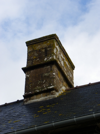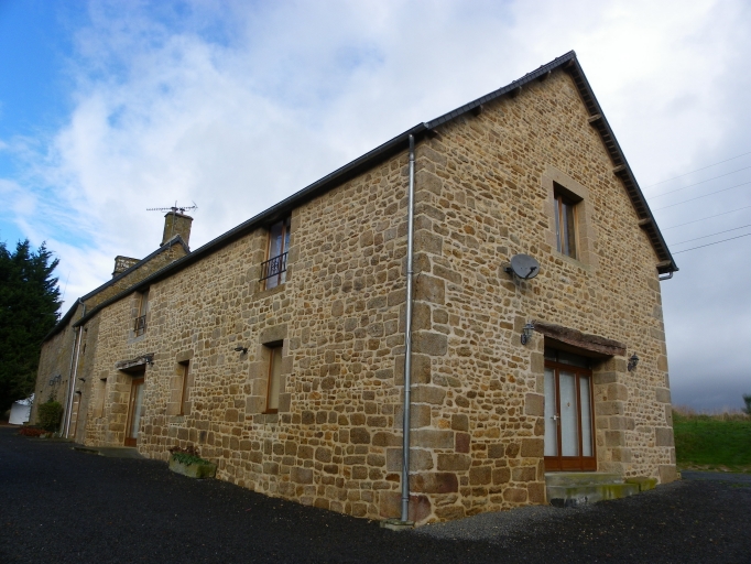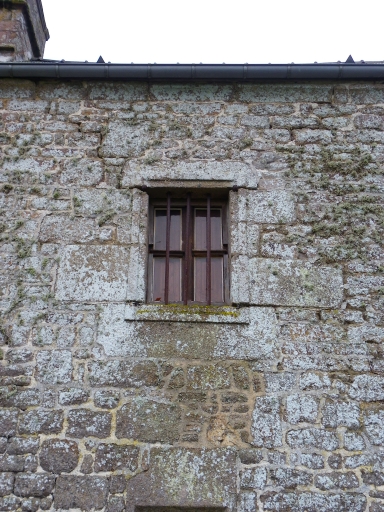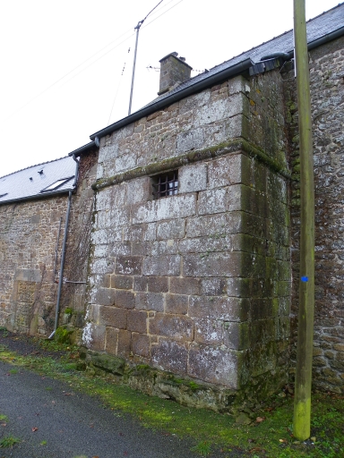 Le logis occupe la partie occidentale de l´alignement, la maçonnerie est en pierre de taille et la façade est couronnée par une corniche en granite. L´ensemble compte un étage, avec une toiture à deux pans couverte d´ardoises. Il compte lui-même deux sous-ensembles que l´on peut identifier par les percements en façade et les souches de cheminée. La première, à l´ouest ne compte qu´une travée de fenêtre et la souche de cheminée, massive, est située sur le faîte du toit. On peut également noter la présence de deux jours carrés de part et d´autre de la porte d´entrée. La façade postérieure, en moellons assisés, est percée de deux fenêtres chanfreinées et moulurées. La seconde partie est composée de deux travées de fenêtres d´une part, avec porte d´entrée légèrement surélevée et complétée par une porte chanfreinée et une fenêtre implantées plus bas. La façade postérieure est marquée par la présence d´une tour d´escalier rectangulaire demi hors-oeuvre, percée d´une meurtrière sur sa face ouest. La tour porte également un bandeau de granite semi-circulaire dans sa partie haute, surmontant une petite fenêtre à grille en fer forgé.