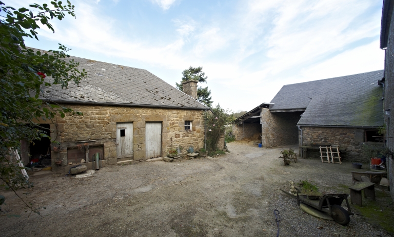 L´ensemble est composé d´un logis central et de deux éléments en retours d´équerre sur la façade postérieure, donnant un plan en U à la ferme. Elle apparaît comme une forme plus aboutie de la ferme du Grand Couvelou construite en 1857. Le logis est clairement différencié des bâtiments agricoles par un traitement particulier et une allure de maison de ville. Il compte un étage carré, une maçonnerie assisée en pierre de taille, et toiture à croupes couverte d´ardoises. La façade principale est ouverte au sud, elle est percée de trois travées de fenêtres, et d'une lucarne à fronton semi circulaire et épi qui couronne la travée centrale. La porte d´entrée est surmontée d´une niche avec croix sculptée tandis qu'un bandeau de granite marque la séparation entre les niveaux. Les ouvertures possèdent toutes un linteau délardé en anse de panier. L´aile occidentale est percée de deux fenêtres au sud. L´ensemble compte un grenier, percé d´une lucarne à fronton triangulaire. L´aile orientale, quant à elle, est percée d´une porte charretière, aujourd´hui vitrée, et d´une fenêtre. On retrouve la même lucarne que sur l´aile occidentale éclairant le grenier. La toiture est à deux pans et croupe, couverte d´ardoises, pour les deux éléments.