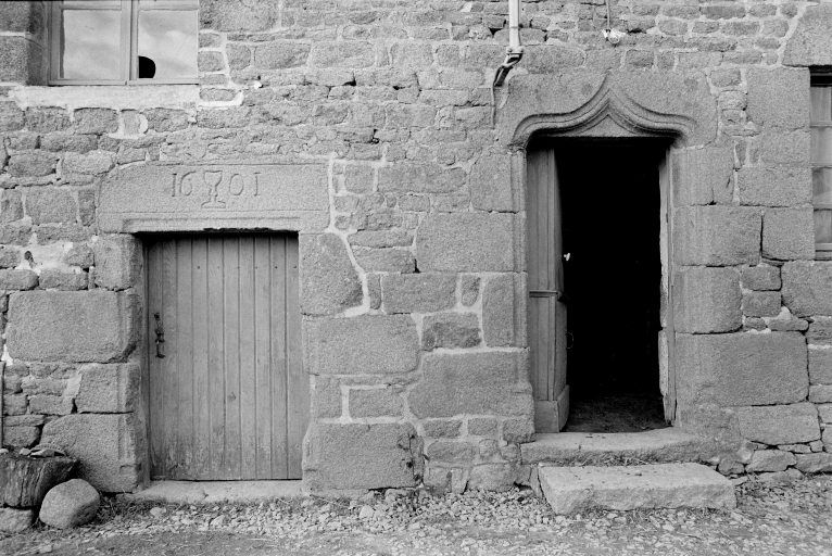 La ferme du Haut Mée se situe tout au nord de la commune de Saint-Etienne-en-Coglès. Cette ferme est composée de trois bâtiments disposés en alignement et construits à des époques différentes. Deux éléments de datation sont présents ici : une porte avec un linteau daté 1601 et un calice sculpté, et une cheminée datée 1586 sur le linteau. A ces dates s´ajoutent des éléments architecturaux typiques de la fin du 16e siècle. En effet, la façade principale est percée d´une porte avec une très belle accolade sculptée sur son linteau, ainsi qu´un tore ornant les piédroits de la porte. La façade du bâtiment principal a été remaniée, des photographies prises dans les années soixante-dix la montre avant la transformation de la partie ouest en garage. Ainsi, on peut apercevoir une petite fenêtre aux bords chanfreinés et au linteau décoré d´une accolade, ainsi qu´une belle grille ancienne la protégeant. Cette partie avait déjà été modifiée par l´ajout d´une porte de grange. Il s´agissait peut-être à l´origine d´une ancienne pièce d´habitation. La partie située à l´est de l´alignement est un ajout du 19e siècle. La plupart des dépendances actuelles datent également de cette dernière époque de construction.
