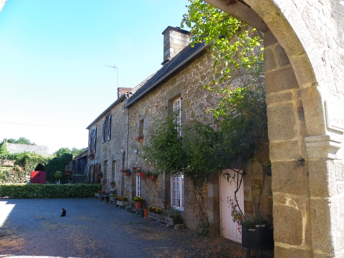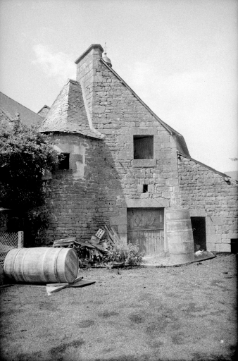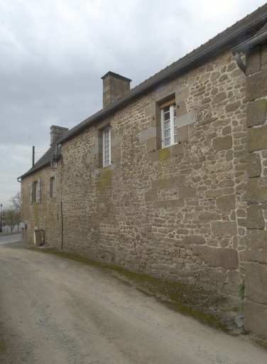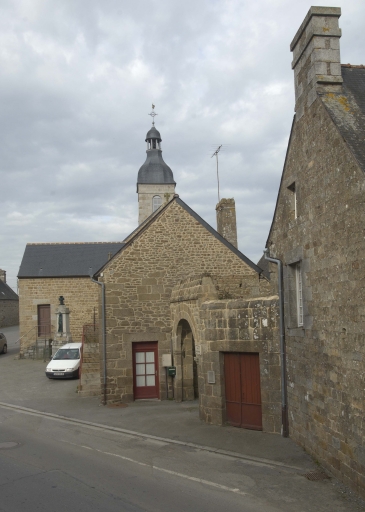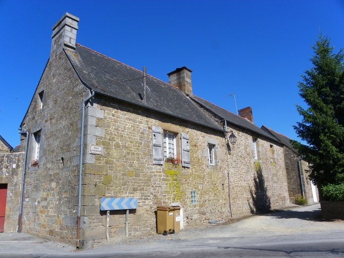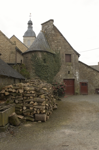 L'ensemble presbytérale est composé du presbytère proprement dit, d'une seconde maison mitoyenne et d'une dépendance construite façe à cet alignement. On trouve également l'ancien jardin du presbytère au nord. On accède à la cour du presbytère par un portail en granite en plein cintre. Le logis principal reprend les attributs traditionnels des maisons de cette époque, avec un rythme de façade encore balbutiant et deux travées de fenêtres. La maçonnerie est en moellon de granite et pierre de taille pour certains encadrements, tandis que la toiture à deux pans et couverte en ardoise possède une panne sablière apparente à l'ouest. La souche de cheminée au nord est en brique, alors que celle au centre du faîtage est en pierre de taille et possède une corniche moulurée. La façade postérieure est aujourd'hui percée de deux fenêtres à l'étage, avec encadrement en pierre de taille de granite bleu et dispose d'anciennes fenêtres bouchées au rez-de-chaussée. La maison voisine est peu différente de la précédente du point de vue stylistique. La façade n'est dotée d'aucun décor particulier, même si on trouve un linteau en arc segmentaire sur une porte, et un piédroit chanfreiné sur la petite fenêtre de l'étage. La façade postérieure compte une grande fenêtre à l'étage ainsi qu'une seconde fenêtre plus modeste. Le fournil quant à lui peut être qualifié d'atypique. Il s'agit d'une construction composée d'une tour à demi hors-oeuvre à l'angle sud-est et d'une partie au plan polygonal irrégulier. La tour, qui pourrait avoir servi de pigeonnier dans sa partie supérieure, s'appuie sur un angle coupé de la partie principale. Une souche de cheminée en pierre de taille et dotée d'une corniche moulurée dépasse de la toiture à croupe ronde de la tour. Le fournil est également intéressant par la hotte monumentale qu'il possède, et qui repose sur deux consoles ouvragées. On trouve aussi en décor un appui de fenêtre mouluré sur la tour.