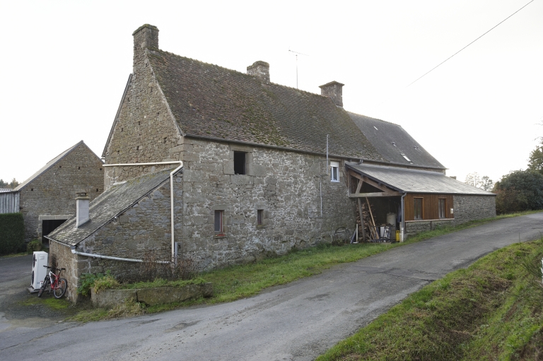 La maison occidentale se caractérise par une belle maçonnerie en pierre de taille de granite, sur deux niveaux. On compte deux fenêtres à l'étage, mais pas d'organisation précise avec les percements du rez-de-chaussée. La toiture, à deux pans et coyau, est couverte en ardoise au sud et en tuile plate artisanale au nord, comme on en retrouve sur divers bâtiments du Coglais. La maison est, à la différence de la maison précédente, est maçonnée en moellons de granite assisés. Elle compte également un étage percé d'une fenêtre tandis que le rez-de-chaussée compte une porte à linteau en anse de panier mouluré et une fenêtre. On retrouve ici l'organisation traditionnelle de la façade avec cette disposition des fenêtres et de la porte. La façade postérieure est percée de petites fenêtres, avec celle de l'étage chanfreinée. C'est également à l'étage que l'on trouve une pierre d'évier. La toiture est à deux pans et coyaux, couverte d'ardoise au sud et de tuile plate au nord.