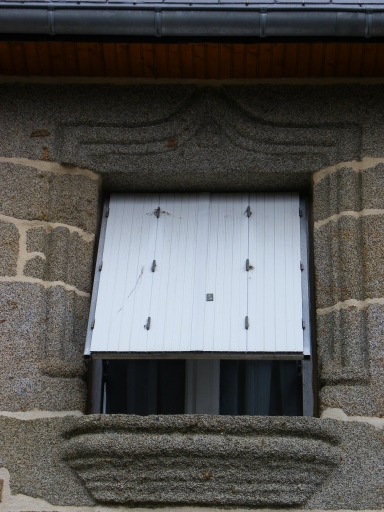 Construite au 16e siècle, cette maison a vu sa façade en partie reconstruite au 20e siècle après la chute du mur. Elle a toutefois conservé les éléments de décors particulièrment intéressants qu'elle disposait à l'origine. La différenciation entre les deux périodes de construction se fait aisément au regard de la différence de mise en oeuvre de la maçonnerie. La partie ancienne est en effet dotée de pierre de taille typique, alors que la partie refaite, à l'ouest, utilise le moellon et même des éléments en granite bleu. La fenêtre centrale a été élargie tandis que la fenêtre à l'est a été percée certainement lors de la reconstruction du mur.