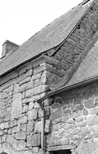 Orientée est-ouest, cette maison s'inscrit dans un petit écart de cinq bâtiments et était mitoyenne d'une autre maison ancienne à l'origine, qui a disparu aujourd'hui. De plan grossièrement carré, elle offre une façade sud percée de deux portes et d'une petite fenêtre au rez-de-chaussée, ainsi que d'une seconde fenêtre à l'étage. Le mur, en maçonnerie de moellon de granite, est couronné par une corniche en cavet que l'on retrouve sur la façade nord. Cette dernière est également percée d'une porte et accueille l'ancien évier. Etonnamment, puisque de taille modeste, on trouve une cheminée par étage, la première étant apposée sur le mur pignon ouest au rez-de-chaussée et la seconde sur le pignon opposé à l'étage. De plus, on n'a pas repéré l'ancien emplacement de l'escalier permettant d'accéder à l'étage. Autre spécificité de cette maison, le soin apporté aux décors. On retrouve, comme il est très fréquent sur les constructions de ce siècle, des ouvertures chanfreinées, mais, plus rare, une fleur de lys sculptée dans l'accolade du linteau de la fenêtre du rez-de-chaussée.