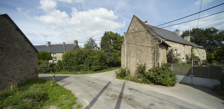 L'alignement de deux maisons à la Louinais est situé au nord-ouest du bourg de Mézières-sur-Couesnon. Ces deux logis sont intéressants car ils sont accolés en équerre et présentent chacun un escalier extérieur menant à la pièce de vie, tandis que le rez-de-chaussée est occupé par une étable. Une des maisons possède d'ailleurs deux pièces à feu à l'étage. Leur construction semble remonter au 17e siècle, en effet, la forme des ouvertures, porte en plein cintre ornée de trois boules sur le chanfrein pour l'un, porte en anse de panier et appui de fenêtre saillant à l'étage pour l'autre sont typiques de la fin du 16e siècle et du 17e siècle.