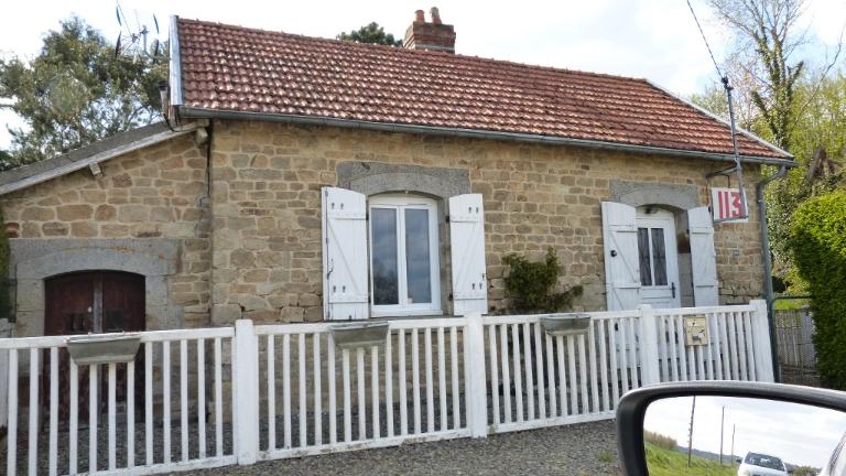La maison, d’un faible volume et profondeur, comprend un rez-de-chaussée et un comble. La façade principale est ouverte d’une porte et d’une fenêtre. Le pignon, tourné vers la voie ferrée, possède deux fenêtres l’une pour éclairer le rez-de-chaussée et l’autre le grenier ou la chambre. L’autre pignon accueille un appentis. La souche de cheminée, en brique, est placée au milieu de la toiture sur le pan opposé à la façade principale. La maçonnerie de ces maisons est en moellons apparents mais était prévue pour être enduite (encadrement des baies en saillie du mur). Les encadrements des baies sont en granite et quelques-unes en briques. Le toit, à deux pans, est couvert de tuile mécanique.