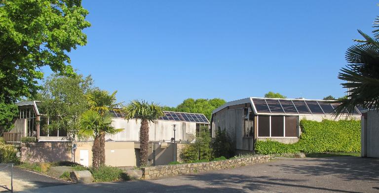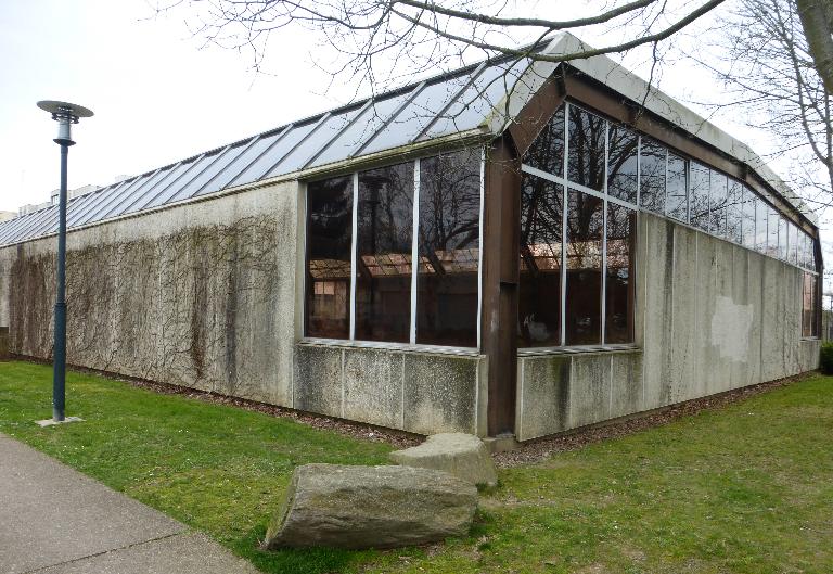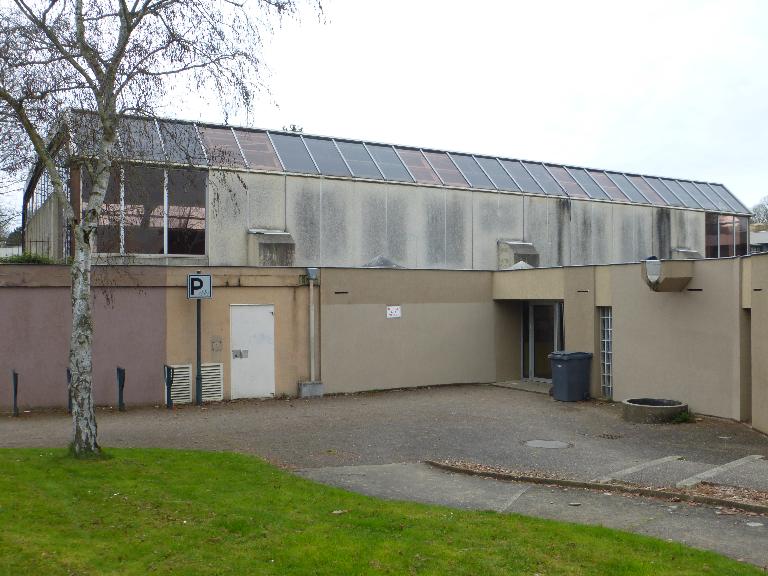 Complexe scolaire du début des années 1980 composé de deux salles de sports articulées par un bloc de vestiaires-sanitaires.