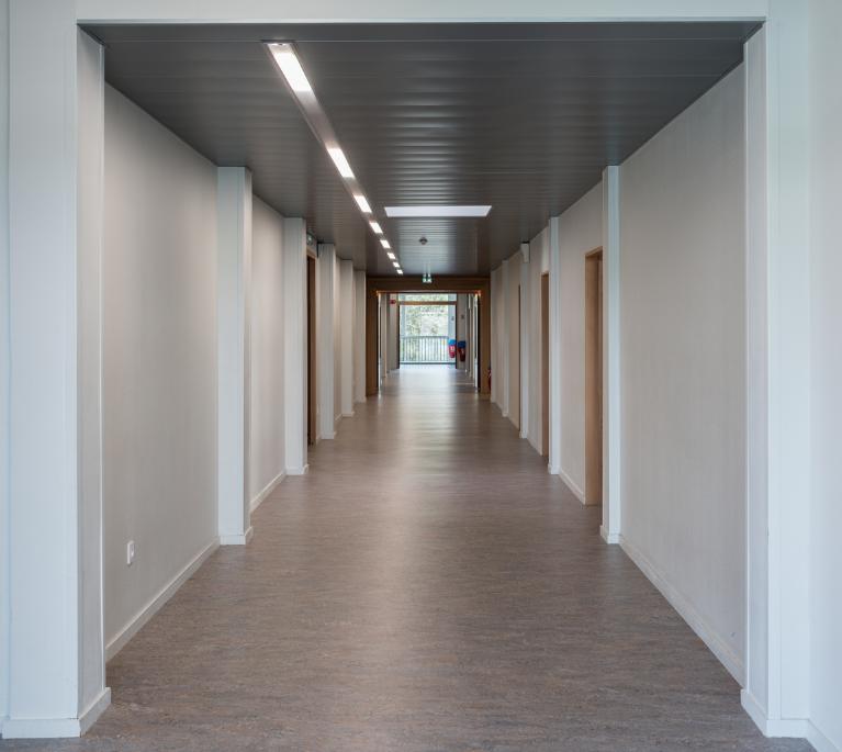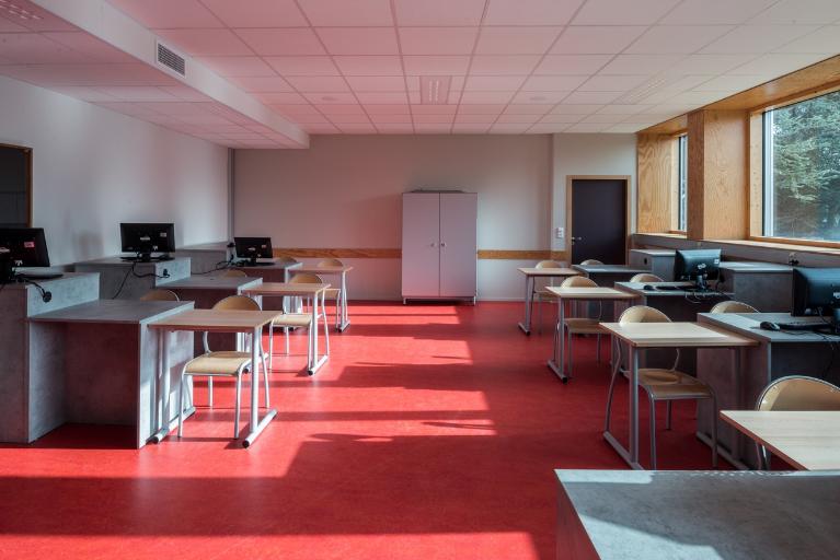 Un espace professeur est également ajouté dans le prolongement du hall d'entrée, à l'est, à proximité immédiate de l'administration. Afin de compenser la déclivité du terrain, il est placé sur pilotis.