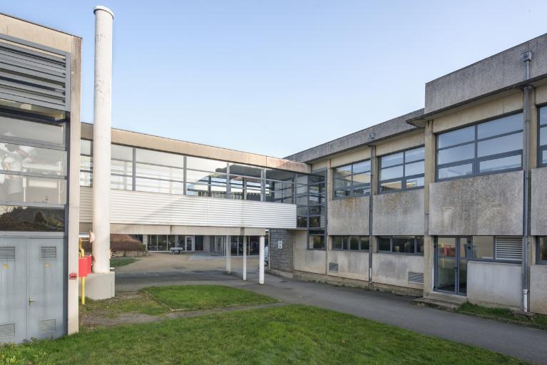 Le plan-masse donné par l'architecte en chef des bâtiments civils et palais nationaux en 1970, Patrice Simon, urbanise la parcelle dans sa plus grande longueur. Selon un axe sud nord se succèdent six bâtiments : les ateliers, l'externat, le bâtiment de l'administration et des services communs (restauration scolaire, infirmerie), l'internat des filles, celui des garçons et les logements de fonction, dont les plans, conservés aux archives départementales d'Ille-et-Vilaine (Fonds Patrice Simon) sont disponibles sous forme de PDF en annexe de ce dossier. Les quatre premiers de ces six bâtiments sont reliés entre eux par des galeries. Tous ces bâtiments possèdent une armature poteaux poutres en béton armé, et sont couverts de toitures-terrasses. Les façades sont parée de panneaux de béton brut, les pignons de pierre de granite smillées. L'architecte a donné aux façades de l'externat un trame régulière, avec des fenêtres et des allèges uniformes. Pour les internats, à l'inverse, il a varié les hauteurs des allèges.