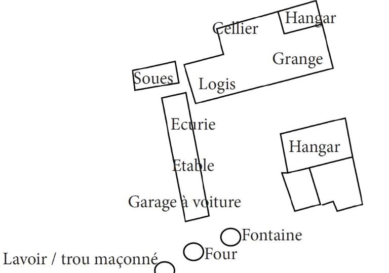 Le puits, le four à pain et le lavoir, autrefois situés à l’entrée sud-ouest de la ferme, ont disparu.
