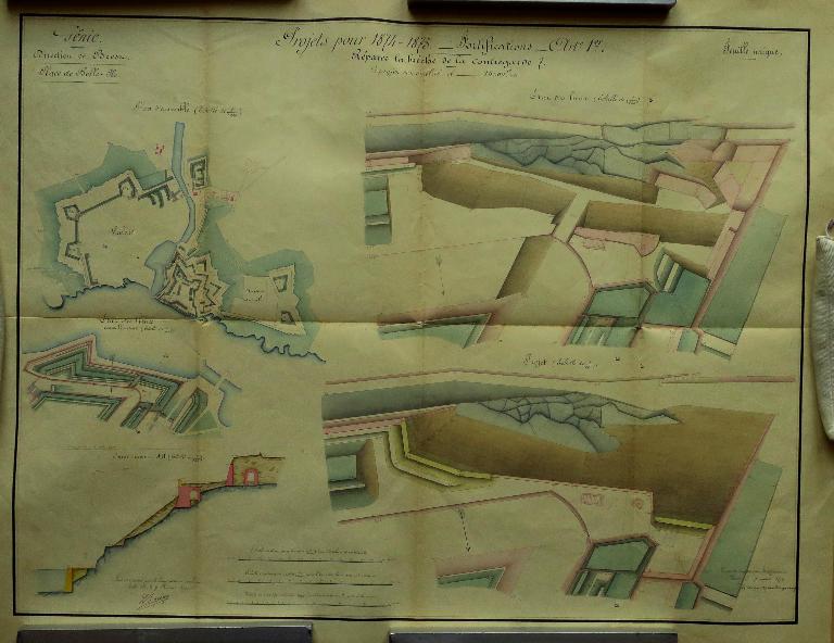 A partir du début des années 1820, les projets de fortification reprennent pour la citadelle de Belle-Île. Ils consistent à essayer de corriger les défauts de l'ouvrage constatés lors du siège de 1761 : mauvais défilement des vues depuis les hauteurs de Palais, vulnérabilité des fronts sud, manque d'abris à l'épreuve de la bombe.