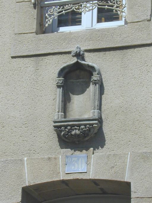 Maison de type ternaire de plan allongé, à un étage carré et un étage de comble. Alignée sur la rue rue sa façade présente comme décor une niche en granite au dessus de la porte. L'accès aux écuries située dans le jardin, se faisait par un passage latéral ouvrant à l'angle de la place Jean XXIII.