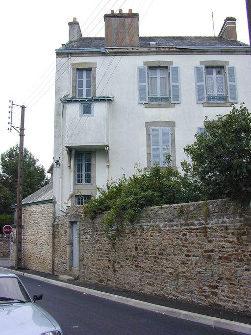 Maison érigée dans le lotissement Glaize, apparaissant sur le plan Léchard de 1897. D'après l'annuaire de 1899 elle est habitée par Geffroy Hersart de la Villemarqué (fils du poète Théodore). Extension par une verrière couverte formant l'entrée à l'angle des rues au début du 20e siècle.