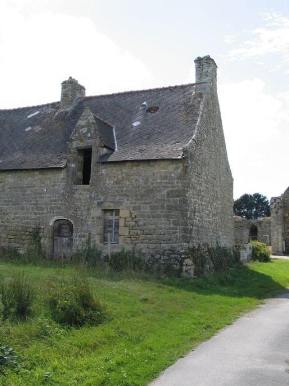 Les bâtiments se développent autour de la cour enclose. Le logis au sud de la cour développe sa façade à un étage carré à trois travées incomplètes vers le nord : au rez-de-chaussée, l'ouverture Est est aujourd'hui remplacée par une porte charretière en plein cintre. L'intérieur n'a pas été vu. L'est de la cour est occupé par la ferme dont la façade regarde vers l'est hors de l'enclos et qui ne possède pas d'ouvertures sur la cour. Le plan en alignement montre un logis-étable au centre complété d'une seconde pièce habitable au nord, peut-être une chambre. Au sud, l'alignement se prolonge par une dépendance. Les pignons découverts suivent la pente du toit brisée par de forts coyaux. A l'ouest de la cour, une porte en plein cintre ménagée dans l'enclos conduisait au jardin lui-même enclos. Au nord de la cour, la maison du jardinier, en rez-de-chaussée avec comble à surcroît ouvert d'une lucarne et d'une gerbière à fronton semi-circulaire en pierre de taille se compose d'un logis à pièce unique à l'est et d'une étable ou écurie à l'ouest.