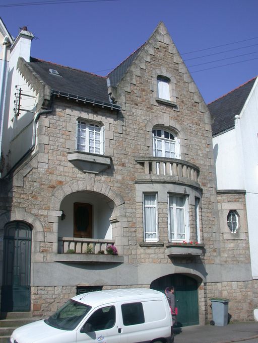 Maison avec travée à pignon sur rue, rez-de-chaussée surélevé sur étage de soubassement, et un étage carré. La pièce principale est éclairée par un bow-window arrondi. L'accès au bâti se fait par un escalier extérieur droit en maçonnerie situé dans une loggia. Les encadrements des fenêtres et les balcons sont en granite.