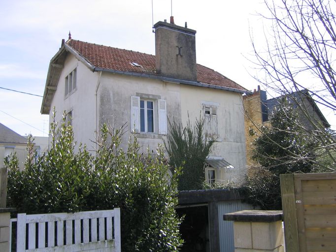Etablie sur deux parcelles laniérées, cette maison non mitoyenne est construite en alignement sur l'avenue avec jardin postérieur et latéral. Elle est enduite avec niveau du sous-sol en moellon. Double en profondeur, la maison est couverte en tuiles d'un toit à demi-croupes.