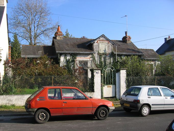 Maison orientée plein sud et implantée en retrait de rue avec jardin en fond de parcelle comprenant un ancien hangar en bois couvert couvert en tôle. De plan allongé, simple en profondeur, c'est une maison de 4 pièces avec 2 pavillons aux angles greffés sur le bâtiment principal qui comprend un comble à surcroît. Le gros-oeuvre est en parpaing de machefer recouvert d'un enduit. Les ouvertures sont décorées de bandeaux de brique. La porte d'entrée est décalée.