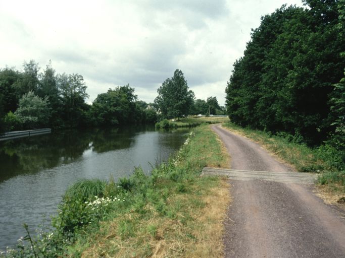 Écluse à sas ; pierre de taille de granite ; porte aval à deux vantaux en bois ; bittes d'amarrage. Déversoir rectiligne. Vanne contre la rive opposée à l'écluse ; culée et îlot : pierre de taille de granite. État actuel : passerelle et vannes métalliques. Ponceau de halage : tablier en bois sur poutres métalliques (à 100 m en aval du Rouvray).
