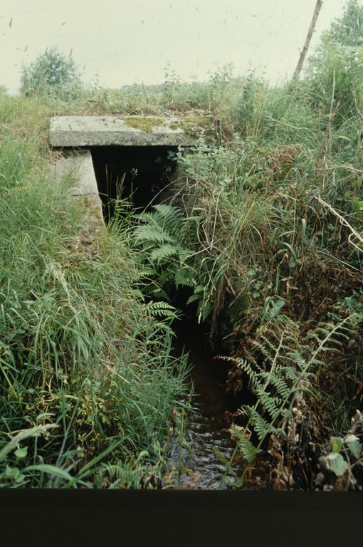 Écluse à sas ; pierre de taille de granite ; bittes d'amarrage. Déversoir & vanne au niveau de la porte amont. Déversoir rectiligne. Vanne contre la rive opposée à l'écluse ; culée et îlot : pierre de taille de granite. État actuel : passerelle et vannes métalliques. Réseau de rigoles à proximité ; en amont le canal semble plus haut que les prairies environnantes.