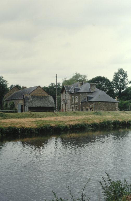 Écluse à sas ; pierre de taille de granite ; bittes d'amarrage. Déversoir rectiligne. Pertuis à vanne ; culée et îlot : pierre de taille de granite. État actuel : passerelle et vannes métalliques. Rigole de ruissellement à l'arrière de la maison. Borne kilométrique 200 (à 300 m en aval de l'écluse de Josselin) : étonnamment placée au km 157 approximativement. Bac (privé) à 350 m en amont.
