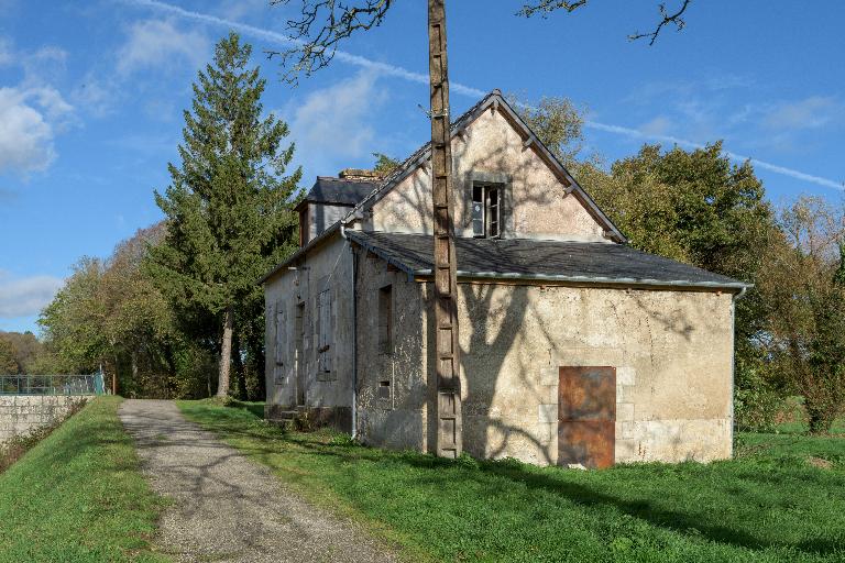 Écluse à sas ; grand appareil de granite ; porte amont métallique, porte aval : cadre métallique et panneaux de bois ; bittes d'amarrage. État actuel : bajoyer de la rive gauche et porte amont écroulés dans le sas. Déversoir rectiligne. État actuel : passerelle métallique récente. Pertuis à l'extrémité du déversoir. Passerelle récente sur rivière : bois et ciment, reposant sur deux piles de granite polygonales. Deux bornes kilométriques en aval.