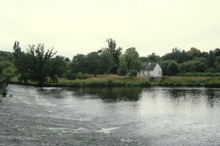 Écluse à sas ; moellons de granite, parements supérieurs : pierre de taille de granite ; pare-gravier : pierre de taille de granite et schiste ; bittes d'amarrage. État actuel : porte aval à passerelle récente : vantaux métalliques ; porte amont partiellement détruite, sans passerelle. Déversoir rectiligne. État actuel : passerelle métallique récente.