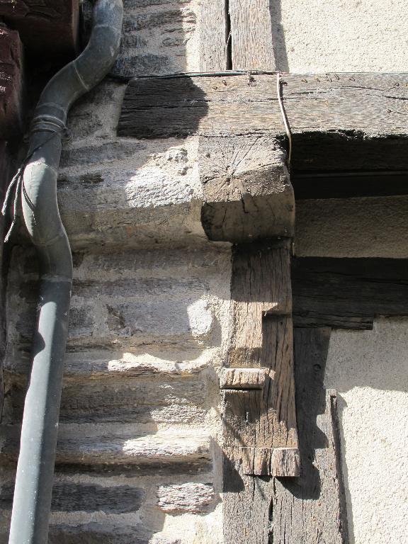 L'enduit qui recouvrait entièrement le pan-de-bois en 1969 a été conservé pour mettre en valeur les pièces de bois.