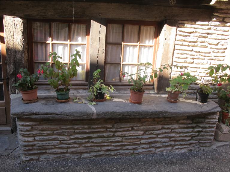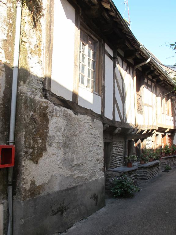 Le pan de bois de l'étage est disposé en feuilles de fougères.
