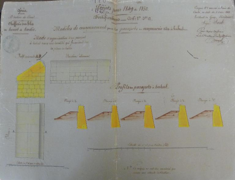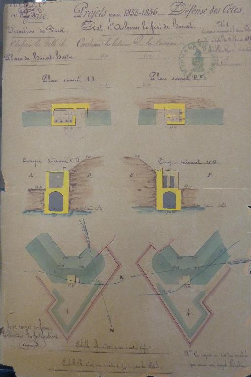 Service historique de la Défense, département Armée de Terre, Vincennes. Archives du Génie ; Article 12, Avis du Comité : 1 VK 42, Travail de la commission d'armement des côtes sur les frontières maritimes, 1844. Avis du Comité des fortifications du 7 novembre 1844.