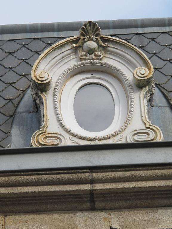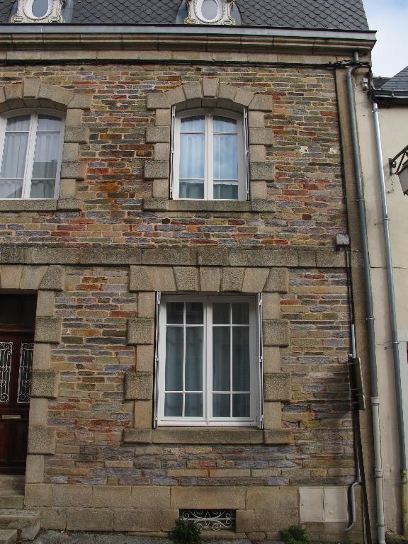 On a tiré parti des différentes couleurs du schiste qui est mis en valeur par l'encadrement à bossage des baies, le bandeau en pierre de taille de granite et la corniche moulurée qui souligne le toit. L'étage de comble, habitable, est éclairé par des lucarnes en zinc repoussé.