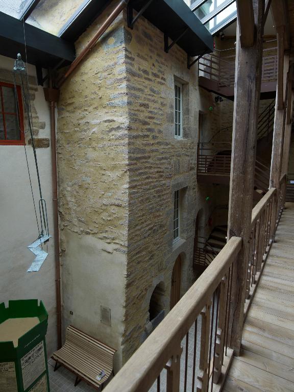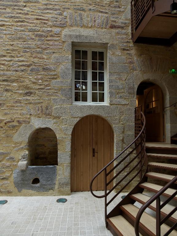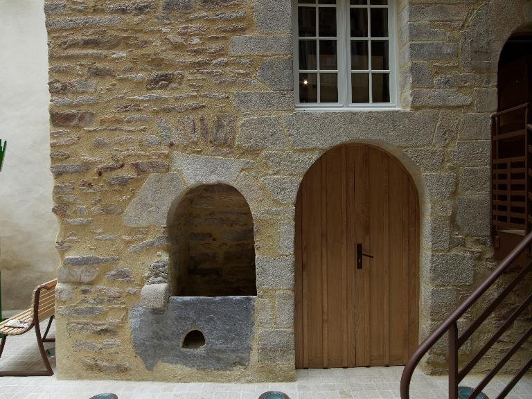 N° 15-17 : Les deux maisons constituent un ensemble construit à la limite des 19e et 20e siècles. La maison d’angle reprend l’emplacement de l’ancienne porte Sainte-Anne, dont la tour est encore visible sur le cadastre de 1829 ; elle comporte deux étages. L'élévation ordonnancée à quatre travées met le pan coupé en valeur en superposant trois niveaux de portes-fenêtres. Les murs en moellons de schiste sont enduits pour mettre faire ressortir les encadrements des baies, les chaînes d’angle, les bandeaux et les corniches moulurées en pierre de taille de granite ; l’enduit de la maison du n°15 a été supprimé.