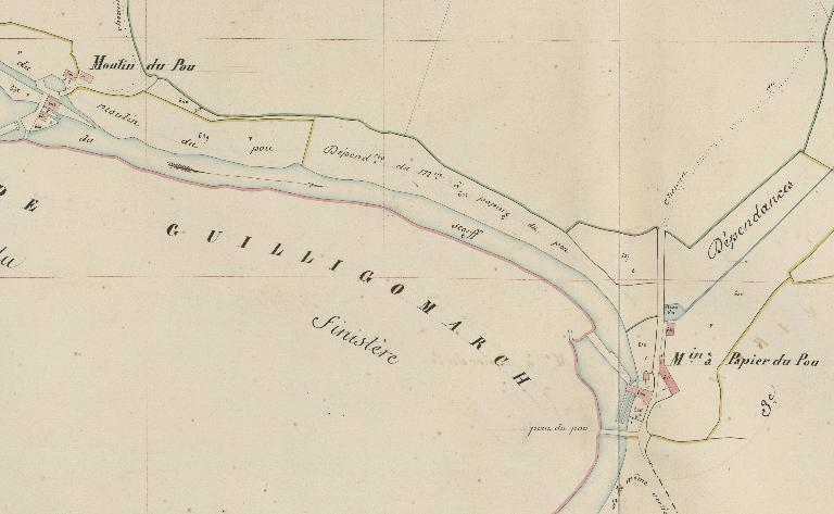 L'état statistique établi en préfecture, le 13 juin 1813, nous indique que 12 à 15 ouvriers y travaillent pour M. Huet. Il y est produit 4 000 kg de papier. Son propriétaire doit être Mathurin Durand du moulin à papier du Grand-Pont au Faouët. Vincent Moulin et son épouse, Rose Monique Blin, fabriquent également du papier au moulin du Paou de 1809 à 1824, avant de rejoindre Quimperlé. Corentin Huet y est papetier dès 1812. Il est le maître-papetier de la manufacture de papier du Pou avec son épouse, Marie Anne Le Ny, de 1816 jusqu'à son décès en 1842. Le cadastre de 1843 indique le lieu : «Moulin à papier du Pou». L'activité a dû s'arrêter entre 1842 et 1844.