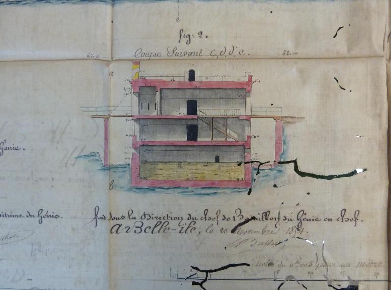 Service historique de la Défense, département Armée de Terre, Vincennes. Archives du Génie ; Article 12, Avis du Comité : 1 VK 582, Registre des avis du Comité des fortifications sur le crédit général pour la défense des côtes, 1846-1849. Séance du 8 juillet 1847, Dépendances de Belle-Ile (Houat-Hoedic).