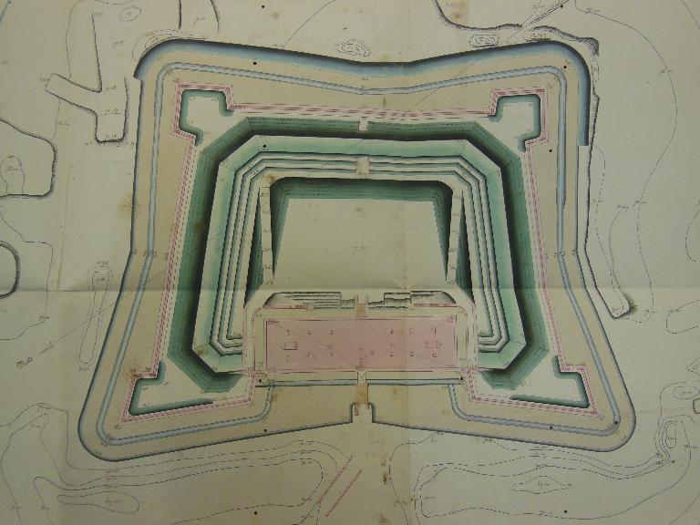 Service historique de la Défense, département Armée de Terre, Vincennes. Archives du Génie ; Article 8, Places françaises et d'Algérie : 1 VH 881, Place de Houat-Hoedic, projets et dépenses annuels, 1863-1875. Direction du Génie de Brest, Place de Houat-Hoedic, État sommaire des projets pour 1873-1874, 25 juillet 1872.