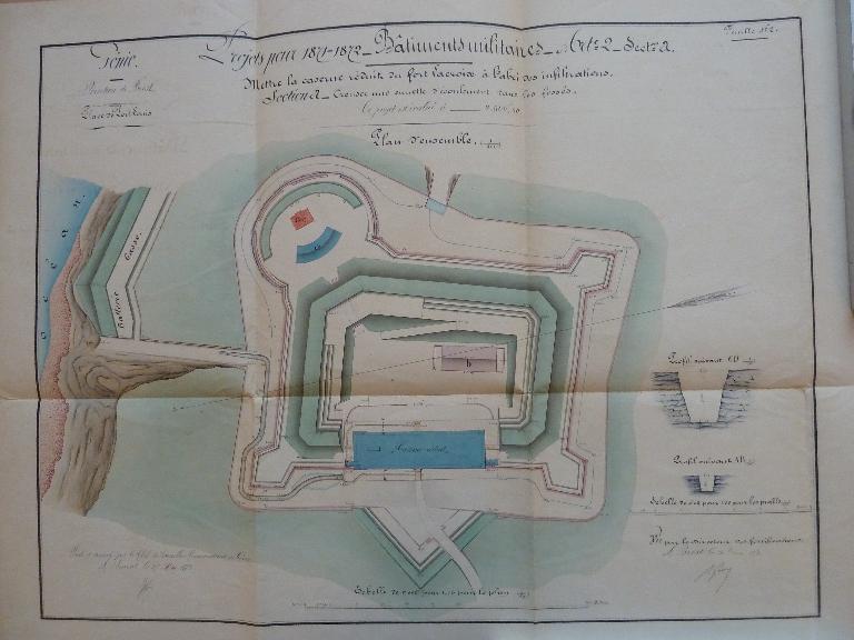 Les travaux commencent en 1846 par la construction de la batterie basse, la réorganisation de la batterie haute et l'excavation des fossés. L'enceinte et la caserne sont achevés en 1849. En 1851 les travaux prennent fin après la construction du magasin à poudre.
