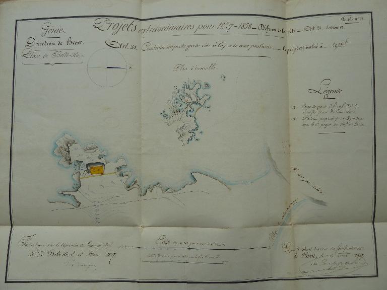 (Service historique de la Défense, département Armée de Terre, Vincennes. Archives de l'Artillerie ; Sous-série 3 W, Opérations militaires : 3 W 32, Documents concernant le 3e arrondissement maritime (Lorient). Projet d'armement des côtes de la France, de la Corse et des îles. Titre III : Projet d'armement du 3e arrondissement maritime (Lorient), 1841-1843, p. 136-137)