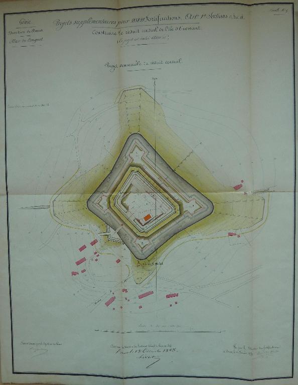 Forts et enceintes sont dotés de casernements à l'épreuve de la bombe. L'extrapolation du modèle de la lunette à réduit de gorge de Le Michaud d'Arçon aboutit au type caractéristique du petit fort trapézoïdal à caserne-réduit de gorge : fort du Guelmeur et forts de la rive gauche de la Penfeld à Brest (projets), fort de Caudan (projets), Groix, Houat, Hoedic.