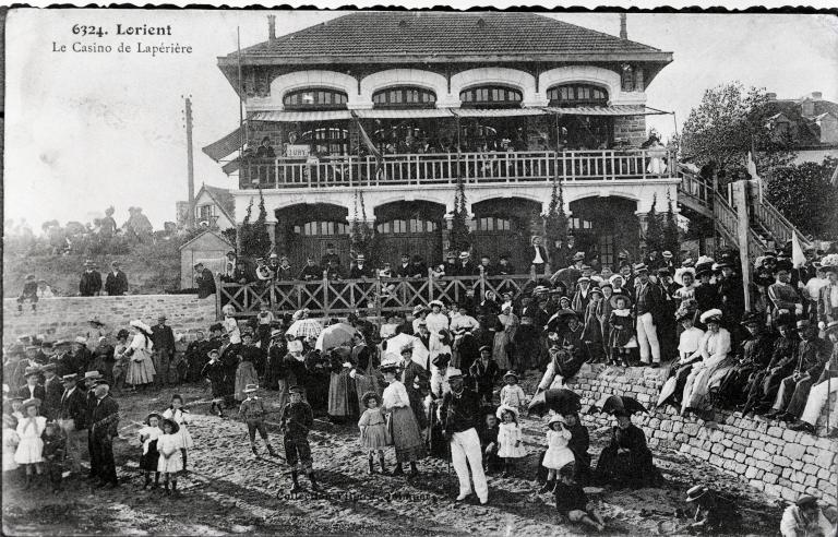 Le casino est inauguré en 1907. Il se situe à proximité de l’embarcadère de la pointe de la Perrière. Cette construction est composée de quatre baies vitrées au rez-de-chaussée et sur sa terrasse. Cette dernière offre un large panorama sur la rade, Kernevel et la citadelle de Port-Louis. Ce lieu est alors très fréquenté par la bourgeoisie lorientaise qui y vient pour observer des courses de régates ou pour écouter des concerts les jeudis et dimanches. Outre son café et son restaurant, on retrouve également un court de tennis et une plage privée équipée de cabine de bains et le siège de la société nautique.