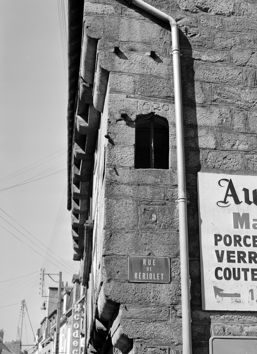 La façade à gouttereau sur rue présente un premier étage et un surcroît en pan de bois en encorbellement ancrés dans des murs pignons à ressauts. Une lisse basse souligne l’appui de la galerie de fenêtres. Chevrons, potelets et croix de Saint-André contreventent et animent la façade. Le rez-de-chaussée est en partie repris et reculé par rapport à l'aplomb initial. Le pignon donnant sur la rue de Keriolet comporte un conduit de cheminée et une ouverture bouchée, probablement un ancien soupirail.