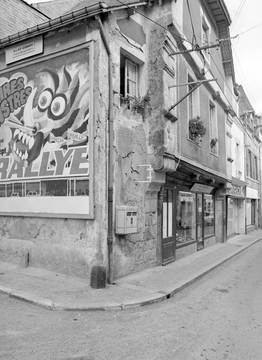 Place aux Roues, une porte en anse de panier moulurée donne accès à l'édifice. Ce même mur conserve au premier étage une fenêtre dont le meneau a disparu. Une construction postérieure masque le reste du gouttereau (n°50).