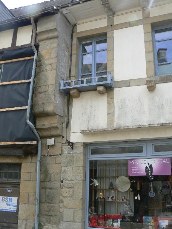 Typologiesmaison d'angle à 1 façade de pierre ; mur gouttereau en façade principale ; 2 encorbellements ; surcroît ; escalier de bois à balustres carrés