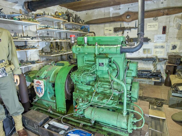 Dans la salle des machines a été remonté un moteur Renault (type D7, n° 152, 1941), offert en 2015 par la commune de Larmor-Plage, provenant de la centrale électrique du poste de commandement de l'Amiral Dönitz à Kernével. A l’origine, ce moteur - toujours parfaitement fonctionnel en 2025 - équipait un ouvrage de la Ligne Maginot.