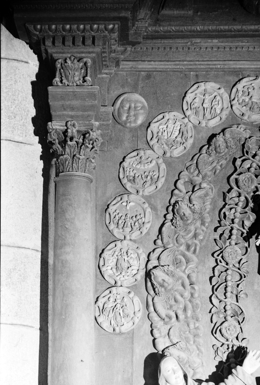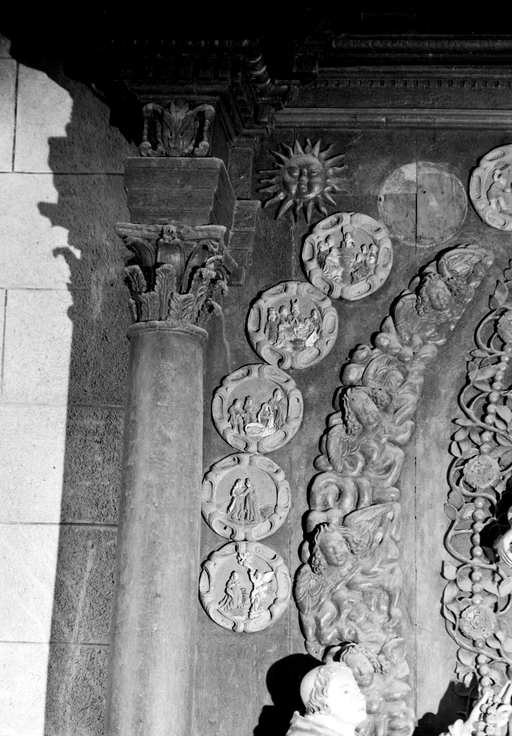 Groupe sculpté et médaillons du Rosaire du 17e siècle détruits dans l'incendie de 1973.