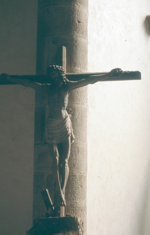 Croix (d'applique, petite nature) : Christ en croix, église paroissiale Saint Pierre (Maël-Carhaix),