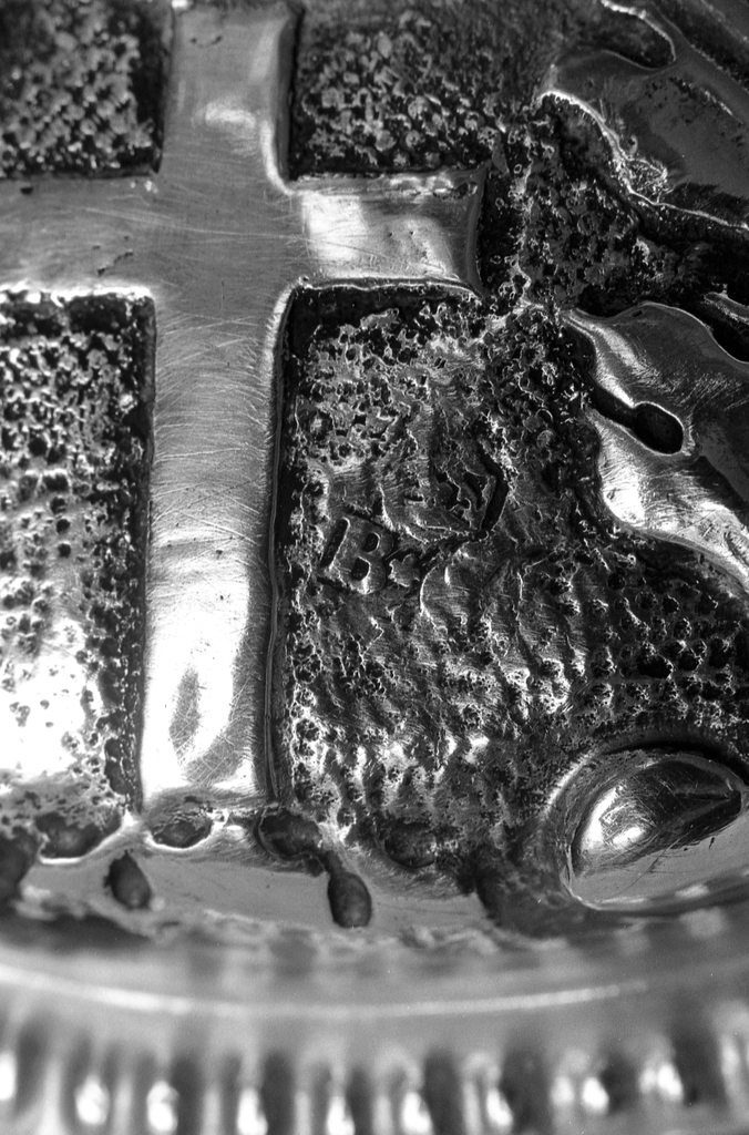 Poinçon de maître : lettres B et C, fleur de lys, Hermine, couronne ; poinçon de charge ? : illisible dans un soleil à 8 rayons.