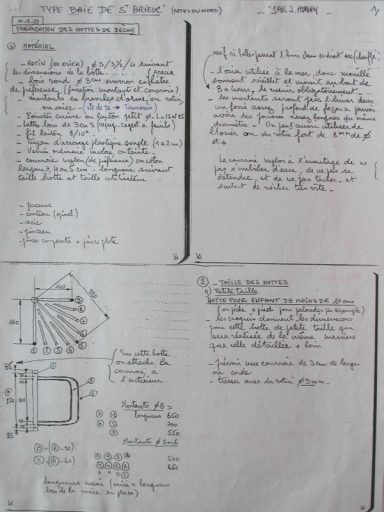 Cette hotte à crevettes, utilisée aussi pour les lignes de fond est de dimension moyenne : longueur 32 cm, largeur 25 cm et profondeur 28 cm, est réalisée en osier, avec un manche en hêtre, des arceaux en orme et les membrures en osier (Jean Guihot). Les hottes du type Trottin de Dahoüet se partageaient avec les hottes de Roger Boulaire de Hillion le marché des pêcheurs à pied. Cependant, chacun pouvait aussi confectionner ses propres paniers de pêche, comme Jean Aubry de la Cotrentin, qui réalisent ses plans et gabarits traditionnels. Les hottes Trotin avaient un fond en contre-plaqué, des membrures en osier et des arceaux en orme. Les hottes d'Hillion étaient entièrement réalisées en osier épluché : hotte pous les palourdes assez profonde (17 x 23 x 26 de profondeur). Hotte de pêche pour les crevettes, entièrement réalisée en osier épluché en 1950 par Roger Boulaire d'Hillion. Ses dimensions : 45 cm de longueur, 32 cm de largeur et 28 cm de profondeur. Les hootes à poisson sont en osier brut avec des montants en orme. Dimensions : 40cm de longueur, 33 cm de largeur et 38 cm de hauteur.