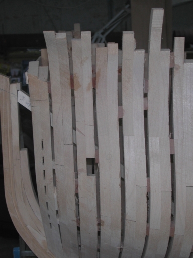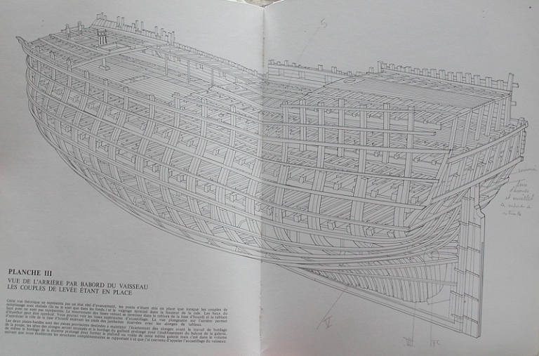 Maquette en cours de construction d'un vaisseau de 74 canons, avec le plan de formes, de charpente et d'aménagement redessiné par Alain Marie Gautier. L'ensemble des couples a été collé (non chevillé) assemblé sur les varangues et la quille. Le modèle fini mesurera 280 cm pour une largeur au maître bau de 70 cm. La technique d'assemblage originale et unique a été rédigée par Alain Gautier et publiée dans la revue Neptunia en 1983-84.