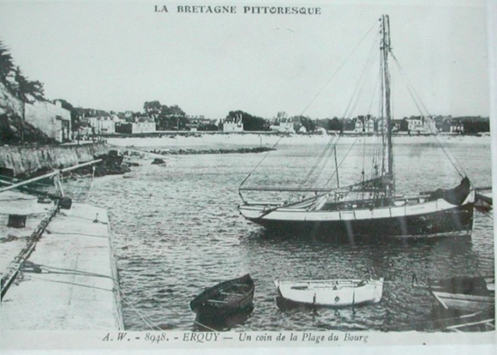 De 1906 à 1923, ce furent deux navires vapeurs du Légué : "L'Hirondelle" et le "Breizh" de l'armement Le Gualès de Mézaubran, qui devaient assurer le trafic des pavés vers les ports de La Rochelle et de Bordeaux. L'exploitation des pavés transférée vers un autre site de la côte nord de la Fosse Eyrand et l'arrivée du chemin de fer départemental en 1922, allait participer du déclin du port d'Erquy, en déshérence Désormais, le port de commerce d'Erquy n'est plus fréquenté que par les trois sloops à vapeur des Carrières de l'Ouest : le "Combresol", le "Quartzite" et le "Quentovic". Quelques cargos de 100 tonneaux "La Seine", le "Cherbourg", le "Granville" du Havre, le "Pomelin" de Paimpol et le "Constant" de Rouen, viennent y livrer du ciment pour la construction de la seconde génération des villas d'Erquy et de Caroual. Les exportations de denrées agricoles accusèrent aussi un net recul : 1000 tonnes par an, du blé pour Saint-Malo et Granville, Jersey et des pommes à cidre pour les distilleries du Trégor - qui fournissent en alcool les armements islandais. Ces trafics étaient assurés par l'"Ulysse", dundee du Légué, le "Servannick" de Tréguier, le "Louis-Marie" de Pleubian et la "Sainte-Jeanne" d'Erquy. A la veille de la seconde guerre mondiale, le môle d'Erquy n'abritait plus qu'une vingtaine de bateaux de pêche.