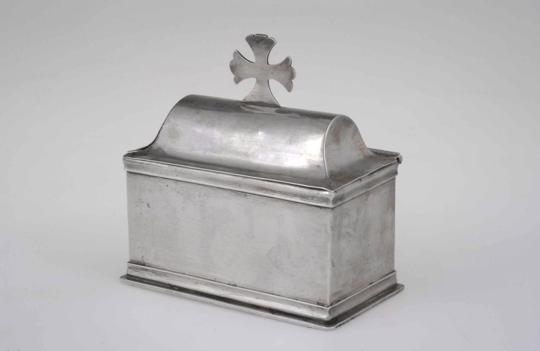 Boite aux saintes huiles réalisée en 1700 par l'orfèvre rennais Jean Buchet.